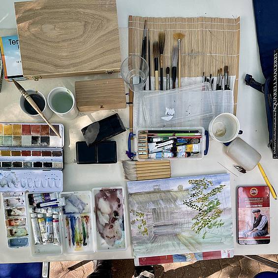 In addition to lithography, other classic printing techniques such as material printing, monotype, woodcut, linocut and letterpress printing can also be carried out, and even the essentials for bookbinding are available. Watercolor painting and calligraphy are also on offer.
