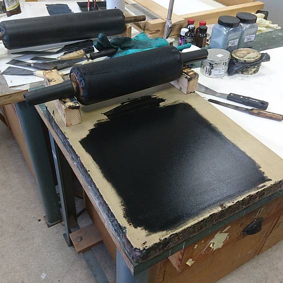 Visit the KUNST-PRAXIS in Gosen and marvel at the heart of the lithography workshop, the 100-year-old press, and use it for your own work.