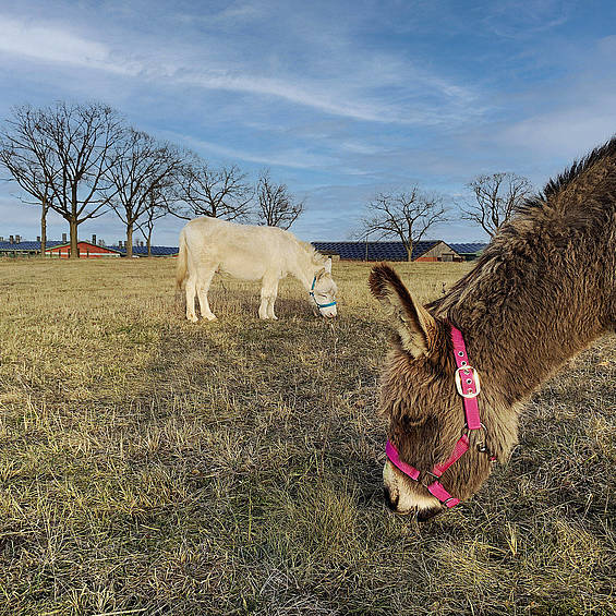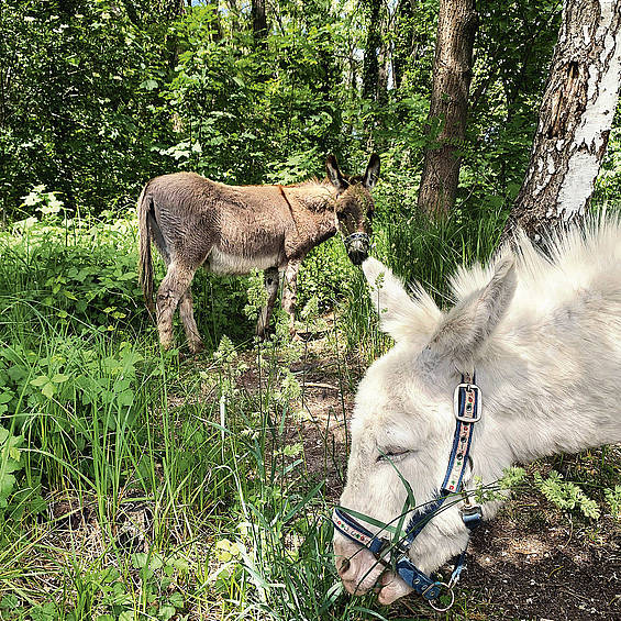 The supposedly stubborn donkey is the ideal companion for excursions in the surrounding area. Learning from a donkey means finding serenity and enjoying the little one in front of you. The two geldings, Juli & August, enjoy walking with donkey-loving people, carrying luggage and picnic baskets. A human companion also comes along.